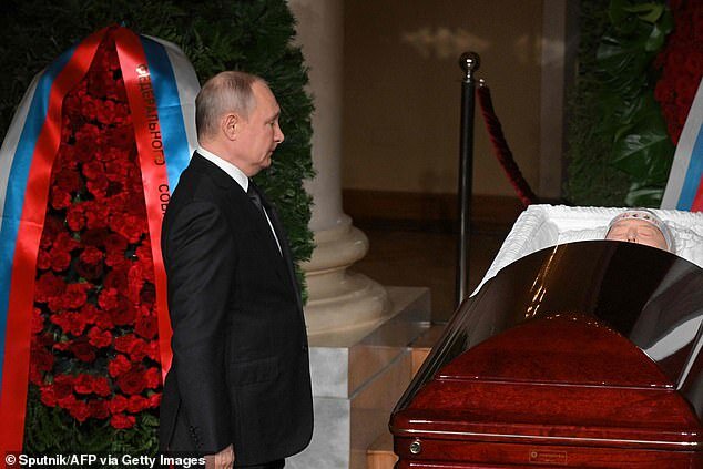 پوتین در این مراسم قبل از صلیب کشیدن، دسته گل رز قرمز را در پای تابوت گذاشت، در حالی که چمدان هستهای را به همراه داشت تا ترور نشود.