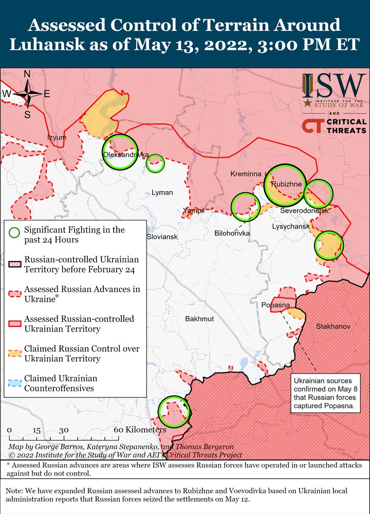 ناتوانی روسها در پیشروی از سمت شمال در عرض رودخانه، تهاجمشان در لوهانسک را کند کرده است وحالا متکی به نیروهایی هستند که از جنوب حرکت میکنند که این نیروها نیز پیشروی کمی داشتهاند.
