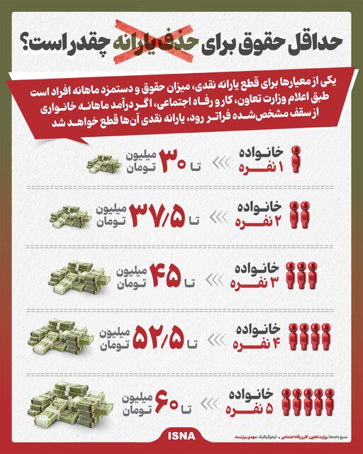 حداقل حقوق ۳۰ میلیون تومان به‌عنوان معیار حذف یارانه نقدی تعیین شد.
