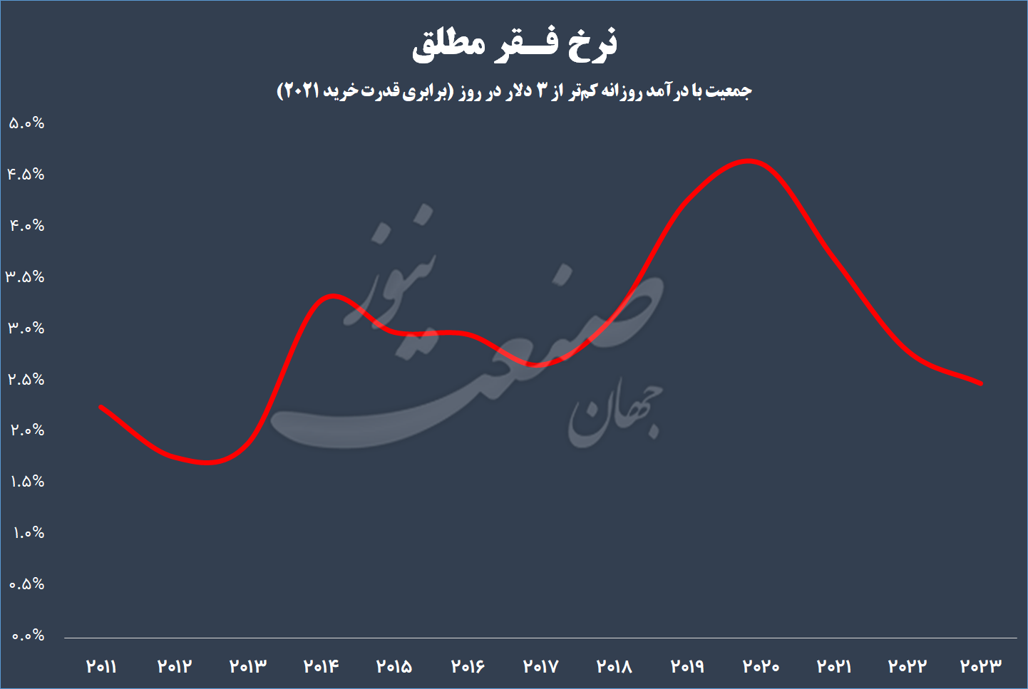از ۲۰۲۱ تا ۲۰۲۳، روند فقر در ایران معکوس شد و شاخصها بهبود یافتند. نرخ شیوع فقر در سال ۲۰۲۳ به ۲.۴۹ درصد کاهش یافت، شکاف فقر به ۰.۰۰۴۹ و شدت فقر به ۰.۰۰۱۶ رسید. در نتیجه، فقر مطلق در ایران تقریباً به سطح ابتدای دهه بازگشت؛ با این تفاوت که دیگر نمیتوان آن را نشانه بهبود ساختاری دانست، زیرا زیربنای اقتصادی کشور همچنان شکننده باقی مانده است.