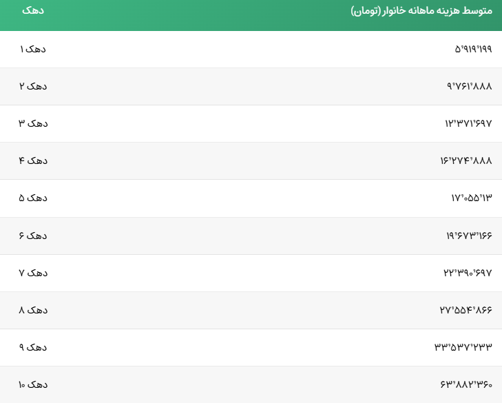 هزینه دهک ۱۰ دو برابر دهک ۹ است