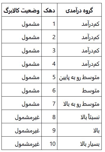 جدول دهکهای مشمول و غیرمشمول کالابرگ پنجم