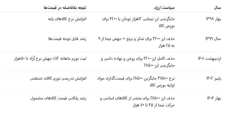 ۳- تعدد نرخ ارز و تغییرات پیدرپی سیاستها نه تنها مانع تورم نشده، بلکه بیثباتی و رانتهای جدید ایجاد کرده است.