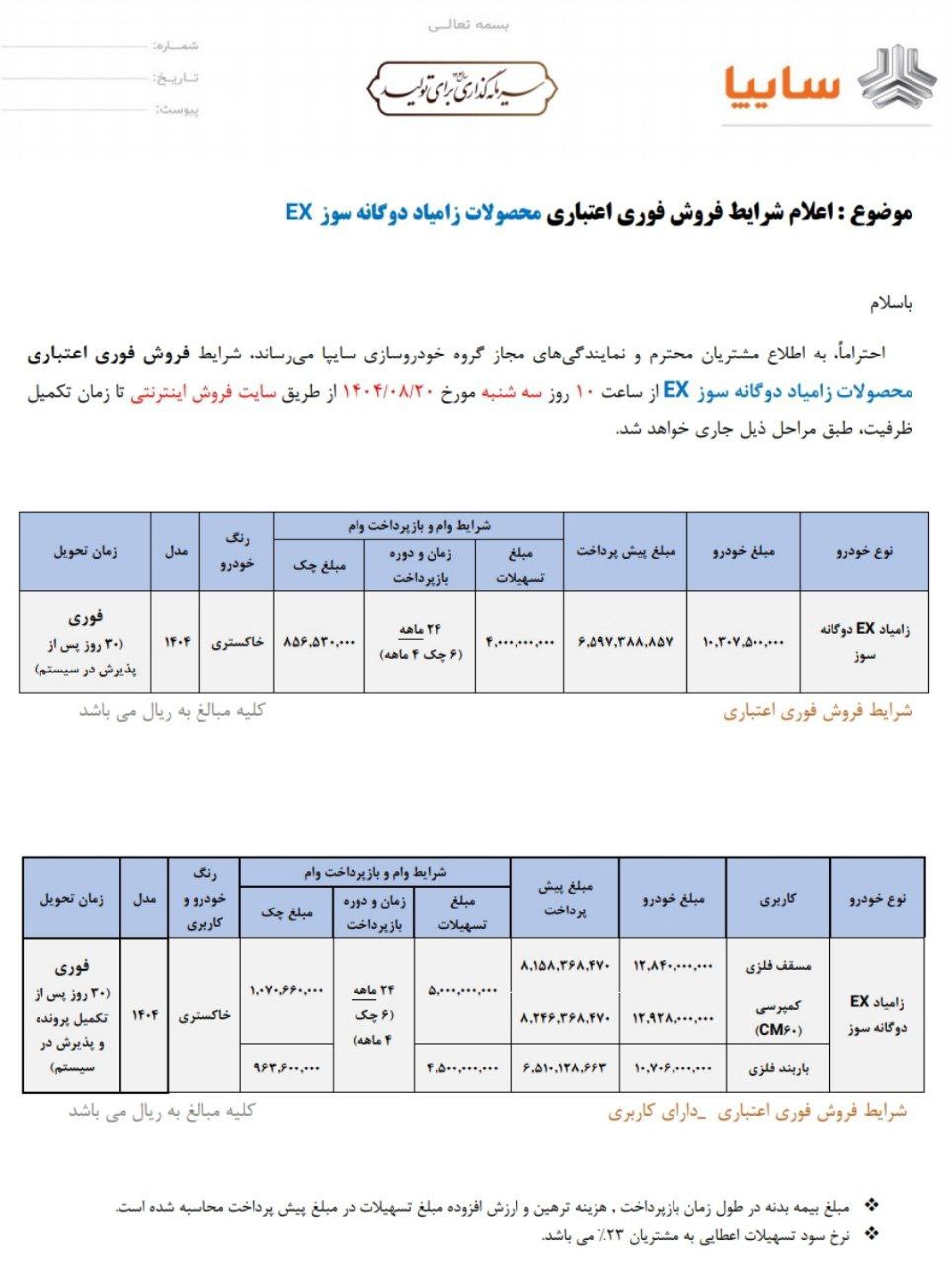 متقاضیان می تواند از ساعت ۱۰ روز سه‌شنبه ۲۰ آبان ماه از طریق سایت فروش سایپا نسبت به ثبت نام اقدام نمایند.