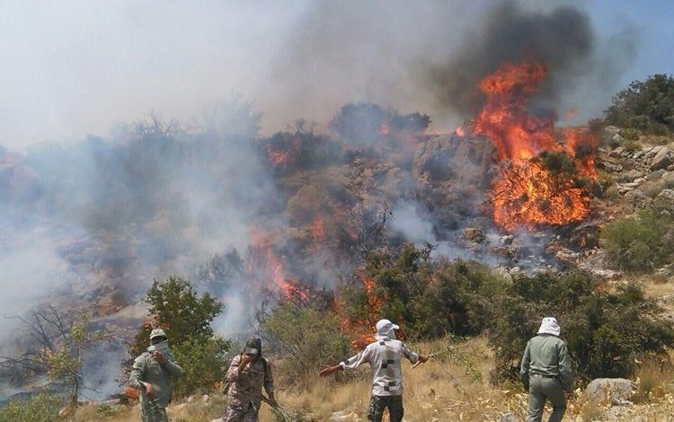 لاشه برگ و سرشاخه های خشک؛ گسترش آتش در شیب ۸۰ درصدی میان دره و صخرهها