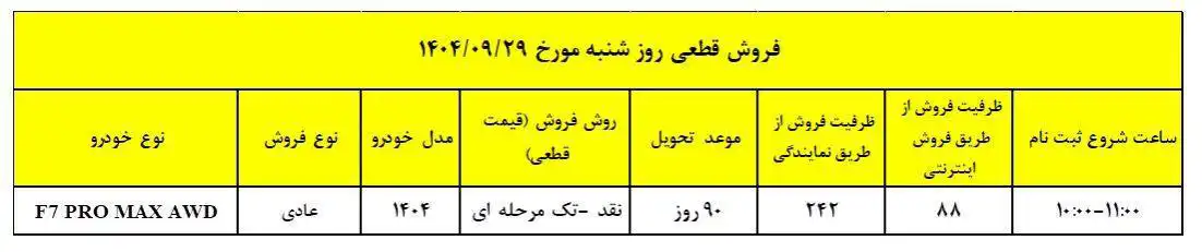 متقاضیان می تواند از ساعت ۱۰ الی ۱۱ روز شنبه ۲۹ آذر ماه طریق سایت فروش و نمایندگی های مدیران خودرو نسبت به ثبت نام اقدام نمایند.
