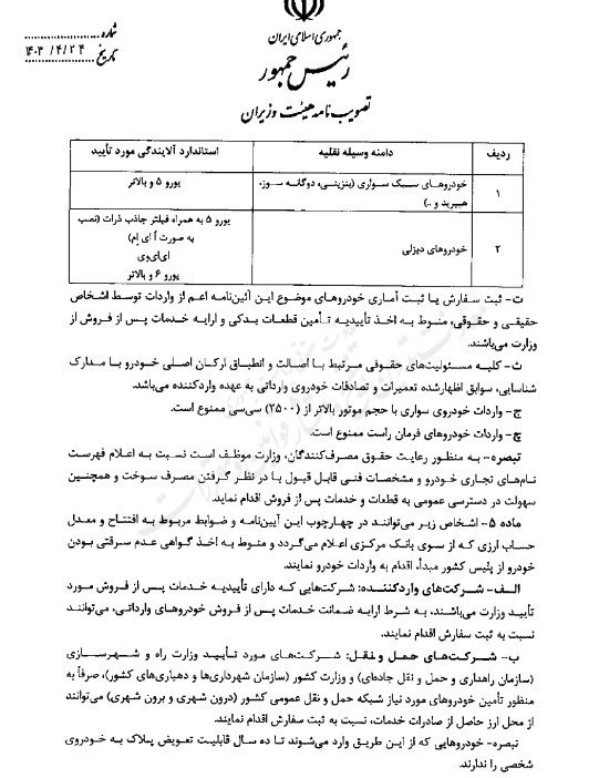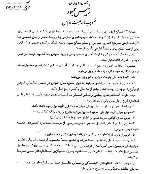 ورود خودروهای ایرانیان خارج‌نشین به ایستگاه تصمیم نهایی تا پایان ۱۴۰۵
