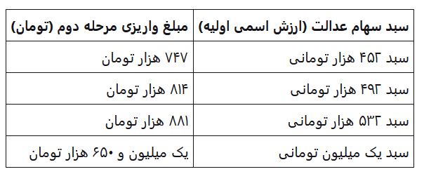 جدول مبالغ واریزی مرحله دوم سود سهام عدالت ۱۴۰۲ (مهر ۱۴۰۴)