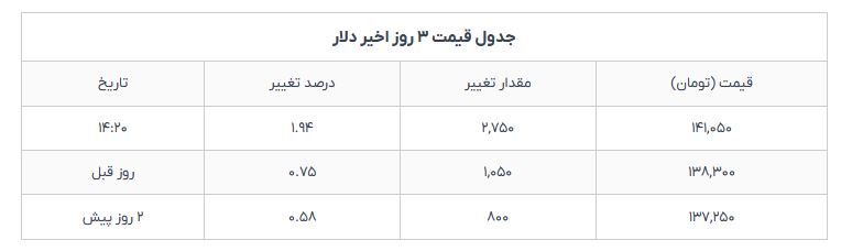 قیمت دلار در بازار امروز به 141هزار تومان رسید
