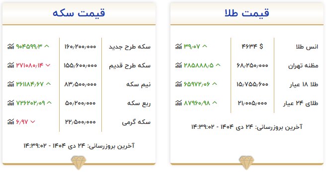 قیمت طلا و سکه امروز ۲۴ دی؛ طلا ۱۵۰ هزار تومان ارزان شد