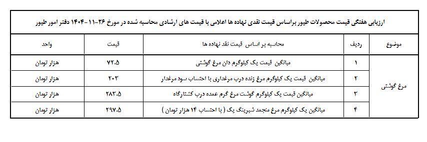 با توجه به تغییر نرخ ارز پایه محاسباتی برای قیمت تمام شده نهادهای اساسی، قیمت کارشناسی مرغ اعلام شد.