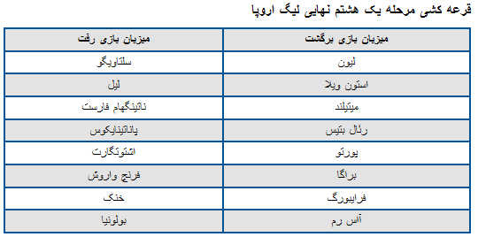 جهان صنعت نیوز، آیین تعیین رقبای مرحله نهایی لیگ اروپا، امروز جمعه ۲۷ فوریه ۲۰۲۶ در مرکز فرماندهی یوفا واقع در شهر نیون سوئیس به انجام رسید.