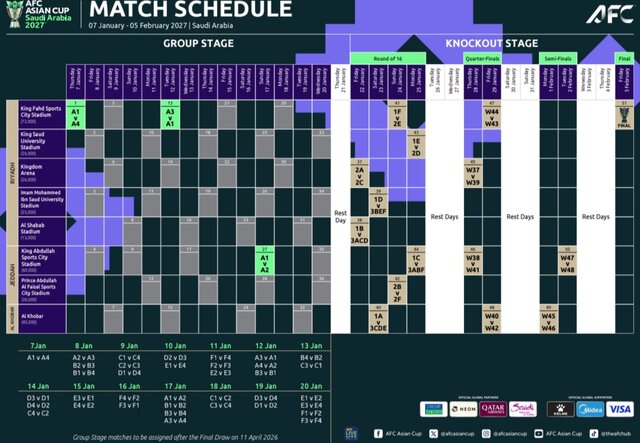 برنامه جام ملتهای ۲۰۲۷ فوتبال آسیا به میزبانی عربستان اعلام شد.
