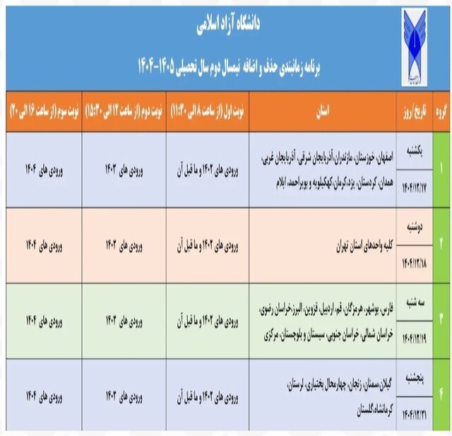 اعلام برنامه زمانبندی فرآیند حذف و اضافه نیمسال دوم دانشگاه آزاد