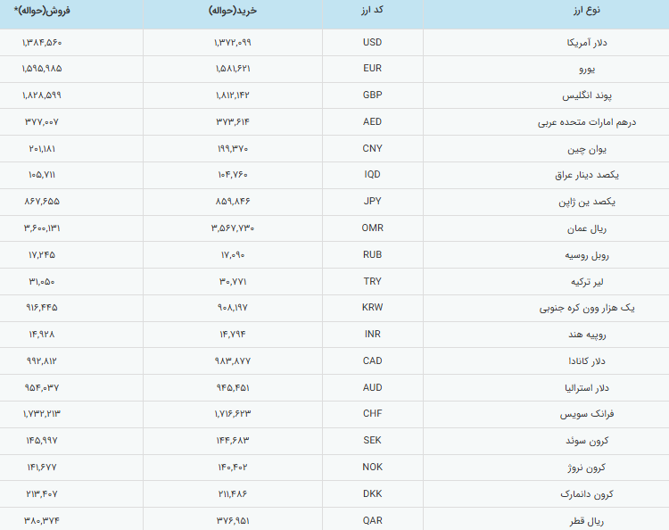 نرخ انواع ارز در مرکز مبادله ایران امروز ۱۷ فروردین ۱۴۰۵ اعلام شد؛ دلار با افزایش حدود ۴۵۰ تومانی به ۱۳۸ هزار و ۴۵۶ تومان رسید و بیشتر ارزهای مهم نیز روندی صعودی را تجربه کردند.