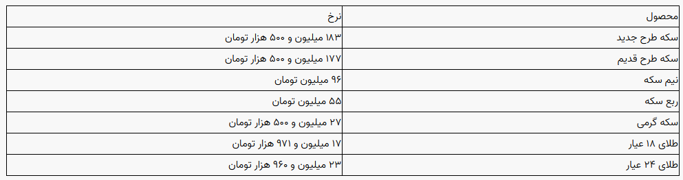 امروز سه شنبه ۲۵ فروردین ۱۴۰۵ در زمان انتشار این خبر هر قطعه سکه تمام بهار آزادی طرح جدید در بازار آزاد تهران با قیمت ۱۸۳ میلیون و ۵۰۰ هزار تومان به فروش می‌رسد.